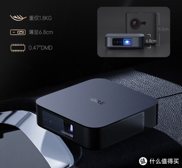 Z7X使用的是0.33英寸DMD芯片,可承载更大光通量,在真实亮度和换面细节上更加出色。这款投影仪机身特别轻薄,只有5CM的厚度,就像一本书一样方便携带。