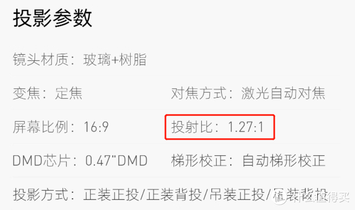 目前投影仪的投射比数值在1~1.9之间,推荐选择投射比采用1.2:1的,适合大部分家庭。