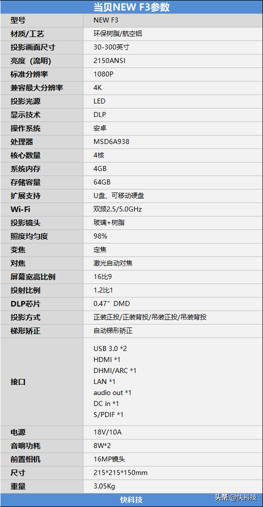总的来看,当贝投影NEWF3几乎是当下配置最豪华的家用投影仪之一。MStar938电视芯片配合4G+64内存,使用时很难想象在这款投影仪上会感到有延迟。MStarCoreTurbo真多核心驱动引擎,支持多种主流4K编码格式,这也是其他投影仪所不具备的。