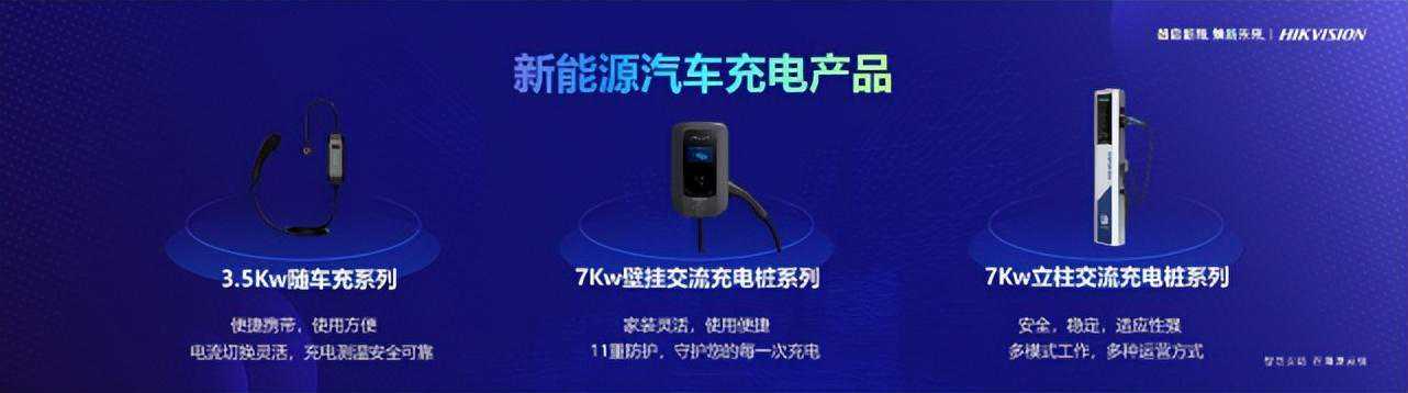 本次重点新品新能源汽车充电桩,包括3.5Kw随车充系列、7Kw壁挂交流充电桩系列、以及7Kw立柱交流充电桩系列,产品规格多样,安全稳定,满足不同场景下的新能源汽车充电需求。