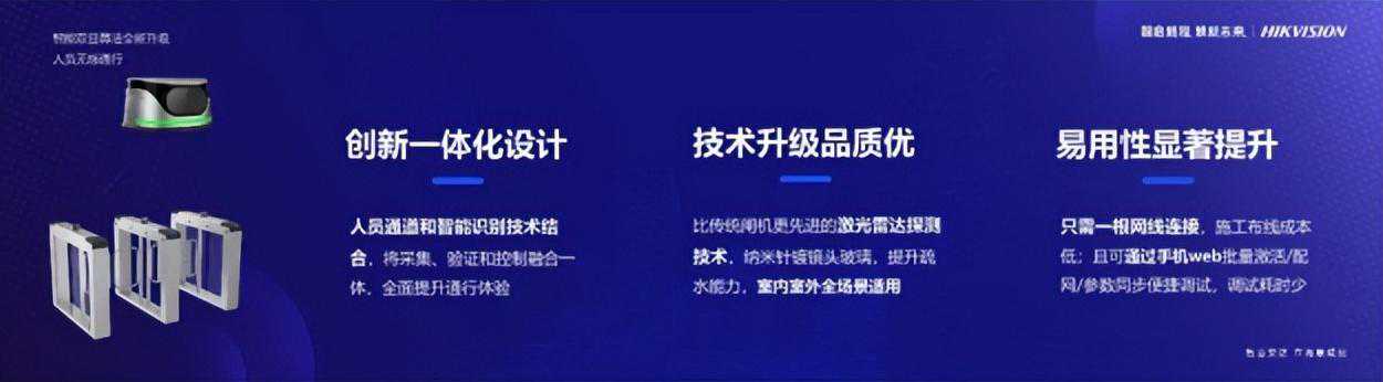 智能一体化闸机将采集、验证和控制融合一体,合而为“易”,全面提升通行体验。它只需一根网线连接,施工布线成本低且易调试,同时搭载激光雷达探测技术+纳米针镀镜头玻璃,有效提升室内室外场景的适用性。