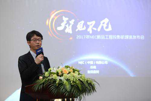 中新网日前,国际显示巨擘NEC在北京NEC大厦召开“智见不凡-2017年新品工程投影机媒体发布会”。NEC(中国)有限公司总裁吉田直树、副总裁范欣,以及NEC工程/教育投影机全国总代理鸿合科技董事副总裁尹立斌、解决方案事业本部副总经理工程产品事业部总经理韩道勇等高层领导盛装出席会议,30余家媒体共同见证了NEC2017旗舰工程投影机的面世。NEC为参加本次媒体发布会的所有业内人士及媒体献上了一场精彩绝伦的3D视觉盛宴,充分展现了NEC在工程投影领域的超强领导力和雄厚技术!