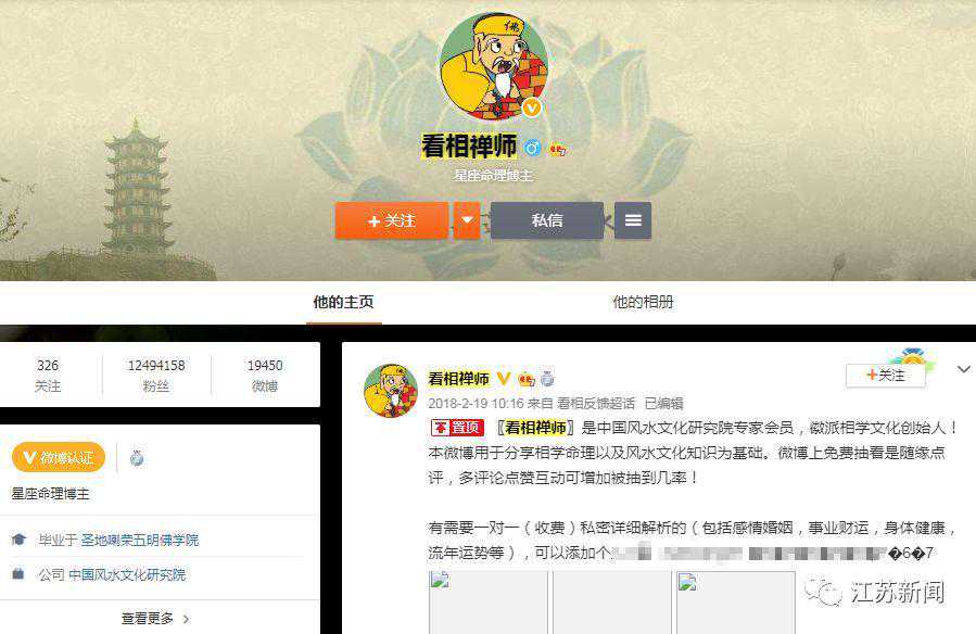 如果你经常刷微博,肯定刷到过星座命理博主,一般这些博主会帮大家解析情感婚姻啊、事业财运等等。比如就有这么个名叫“看相禅师”的“大V”,标榜自己是“中国风水文化研究院专家会员”、“徽派相学文化创始人”,......
