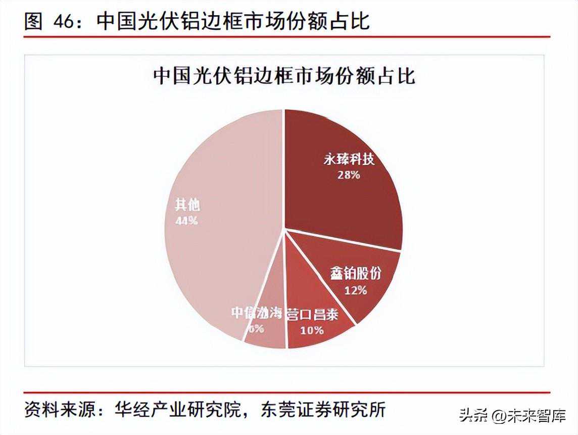 光伏边框铝型材要求相对建筑铝型材更高,光伏铝边框采用阳极氧化工艺,要难于建筑铝型材使用的喷涂工艺,边框能起到保护光伏组件的作用。经过阳极氧化的铝型材,表面有一层致密氧化膜,使得抗氧化、抗腐蚀性进一步提升。目前国内光伏铝边框行业市场规模较小,竞争激烈,目前产能较大的企业包括永臻科技、鑫铂股份和营口昌泰等,2021年永臻科技产能最大,市场份额占比28%。