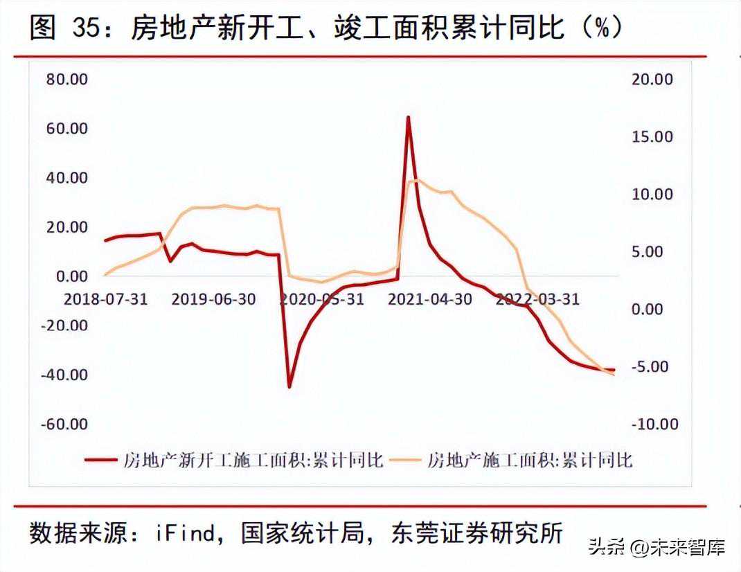 建筑领域在铝行业下游消费的占比最大,达到29%。建筑用铝主要集中在竣工房屋的门窗、玻璃幕墙、装饰等场景。此前在房地产行业信用风险提升、政策调控叠加疫情等影响下,自2021年2月起,房地产施工及销售等数据呈持续下滑趋势。截至2022年10月底,中国房地产新开工面积累计同比下滑37.80%,房地产开工面积累计下滑5.70%,商品房销售面积累计同比下滑22.30%,商品房销售额累计同比下滑26.10%。