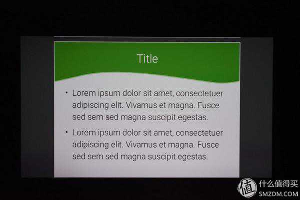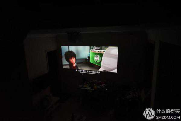 投影距离为3米(约100寸),观看距离约为4米,在此距离下观看电影清晰度还是可以接受的,但此距离下PPT的显示效果已经大打折扣了