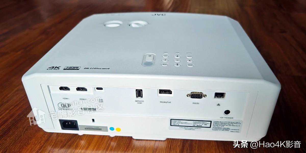 接口设置在机身背面,包括了双HDMI输入、DP输入接口()、USB接口、RS232C和网络控制端口以及12V触发端口。