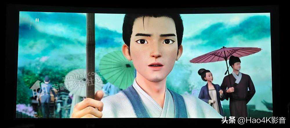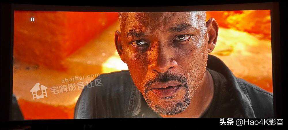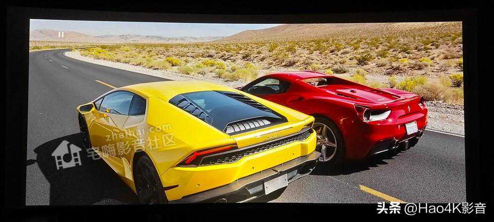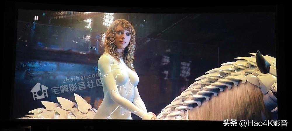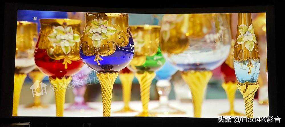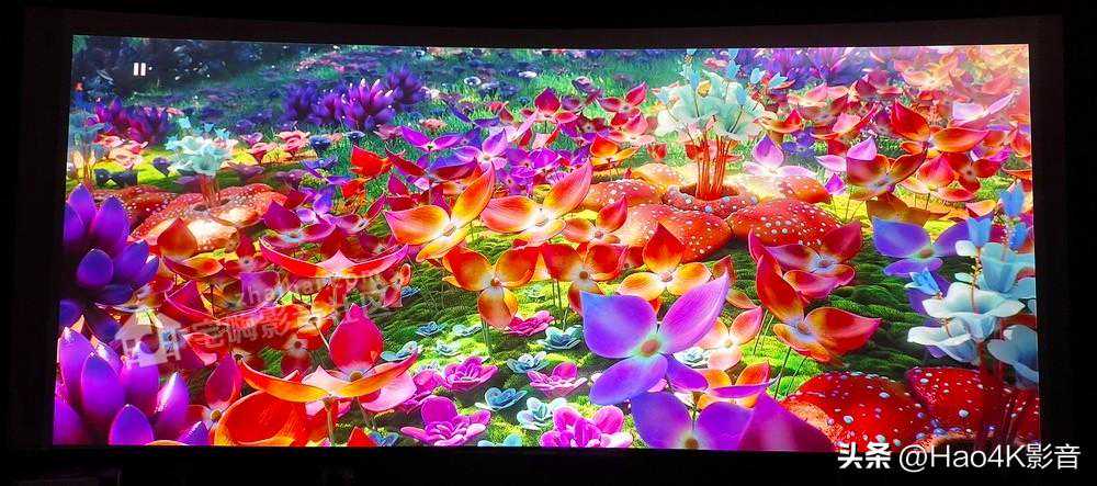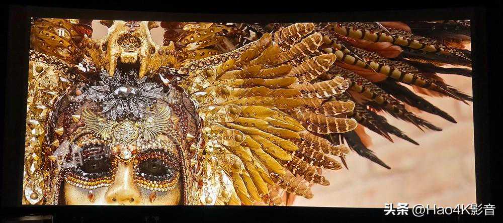 由于N59的投射比无法投满我的220寸幕布,根据现场投射出的画面尺寸来看只有190寸左右,以下屏摄均基于190寸幕布的实拍(手机拍摄)。