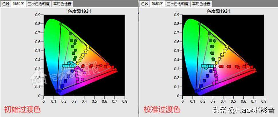 5、因是工程机的原因,HDR六色校准后在部分色点上依旧存在偏移的情况,希望后续量产上市机型能完善这一问题。