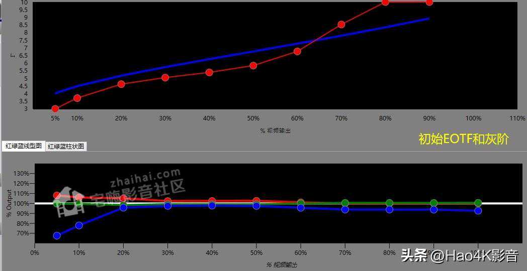6、出厂默认的伽马、EOTF和灰阶曲线参数表现不错,稍微调整下即可达标。