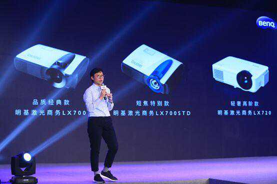 明基中国产品研发中心高级经理张雅婷指出,”新光源带来对比度和色彩显示上的表现优势,同时寿命长达20000小时,免去灯泡更换的人力物力成本,防尘性能再升级,再带上相对亲民的价格,是我们专为企业用户量身打造的全新系列产品”,三款新品分别是3000流明短焦LX700STD、3000流明长焦LX700以及4000流明的LX720,从基本参数上看,首批激光商务产品可满足主流会议室的亮度需求。