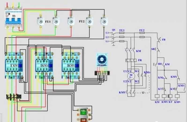 热过载继电器和主电源接触器连接,三相相序相同,上图黄绿红为主线部分,黑色线为二次线控制线部分。