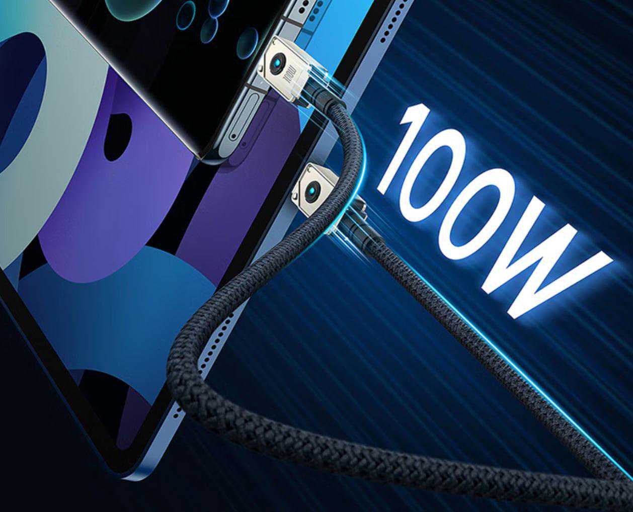倍思新款100W快充线采用F-12芳纶纤维材质包裹线身,拥有耐拉扯、耐弯折、耐磨损和防火等特性;据官方介绍拥有5倍承重能力,线身和端子连接处支持20000+次耐弯折寿命。