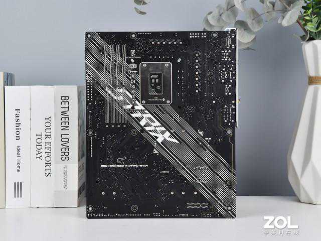 主板背部有一道ROGSTRIX经典的电竞图腾纹路。