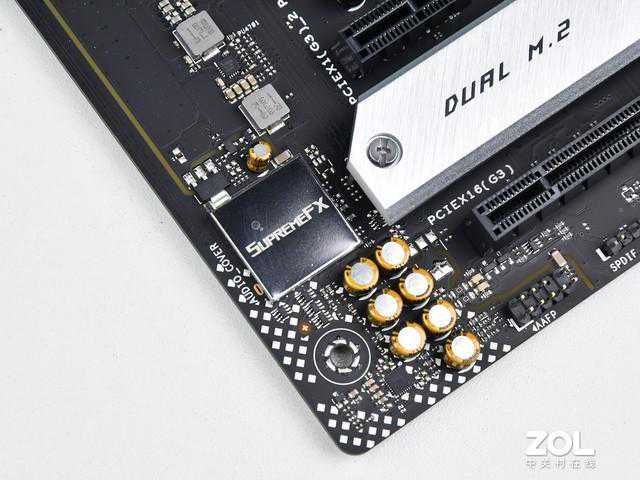 VRM区域由带ROGSTRIX和败家之眼LOGO的散热器覆盖,散热片底部装载导热垫辅助MOSFET进行散热。