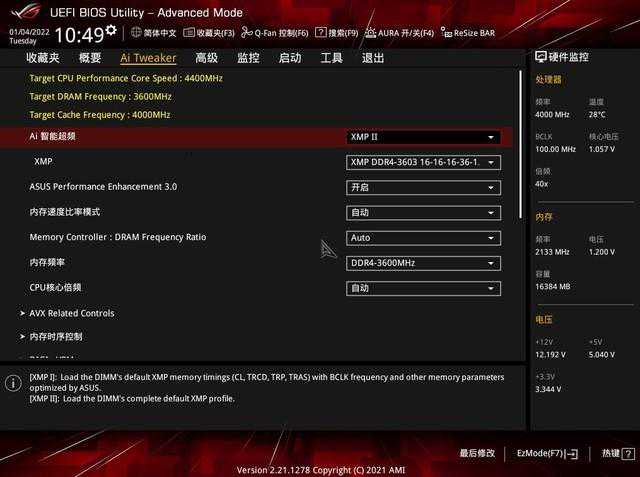 B660主板支持内存超频,华硕ROGSTRIXB660-AGAMINGWIFID4吹雪主板BIOS中也增加了相应的频率、时序、电压等调节设置,嫌麻烦或者萌新用户也可以直接在AI智能超频选项中开启XMP设置。