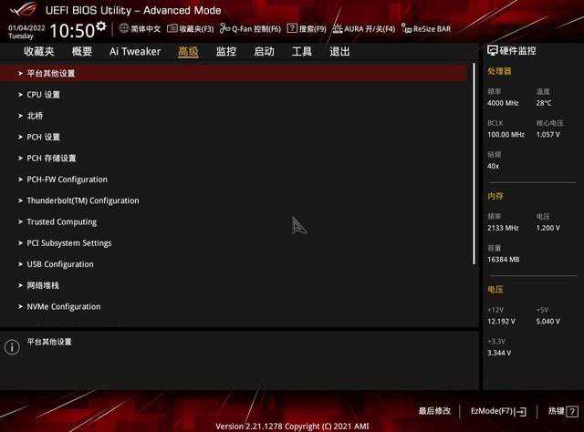 BIOS方面,华硕ROGSTRIXB660-AGAMINGWIFID4吹雪主板也延续了优秀的中文化图形BIOS设计,界面简洁、干净,功能丰富,便于调校。