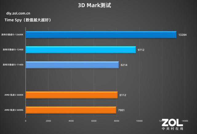 在3DMark的测试中,酷睿i5-12400甚至已经基本超越了锐龙55600X,除了FireStrike物理性能外都赢了,也比酷睿i5-11400优秀很多,这一代的性能核心不容小视。
