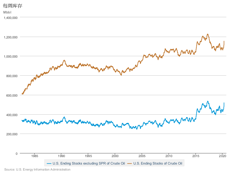 4月22日EIA发布的数据显示,截至4月17日当周,美国原油库存为11.536亿桶,SPR原油库存(战略石油储备库存)为6.35亿桶,除SPR以外的原油库存(即商业库存)为5.186亿桶。