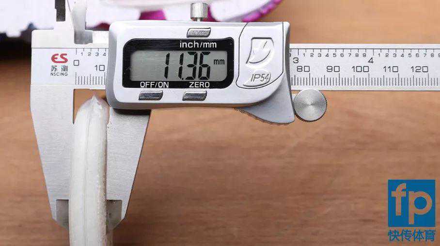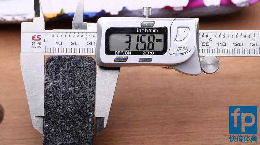 K3(图左)前掌中底+外底厚约17.65毫米,K4(图右)前掌中底+外底厚约18.65毫米