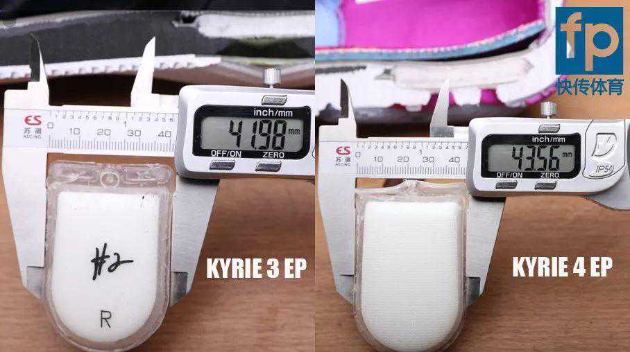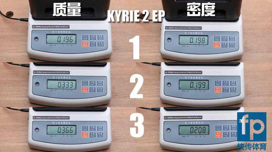 通过上述数据可以看出,KYRIE2EP、KYRIE3EP和KYRIE4EP的中底缓震材质密度基本一致。