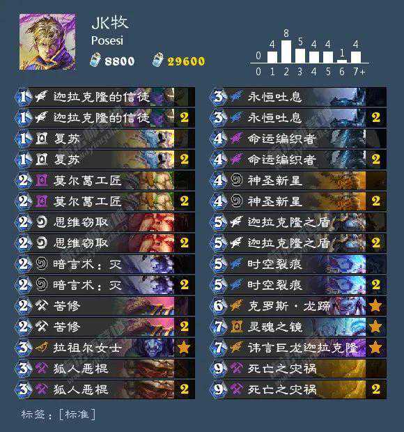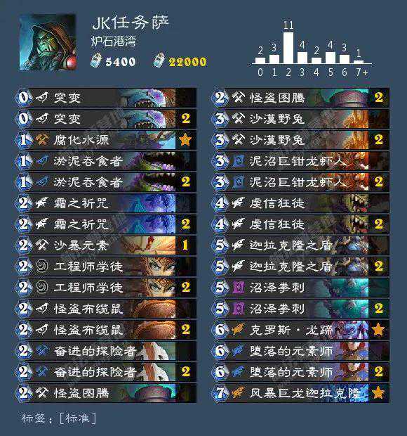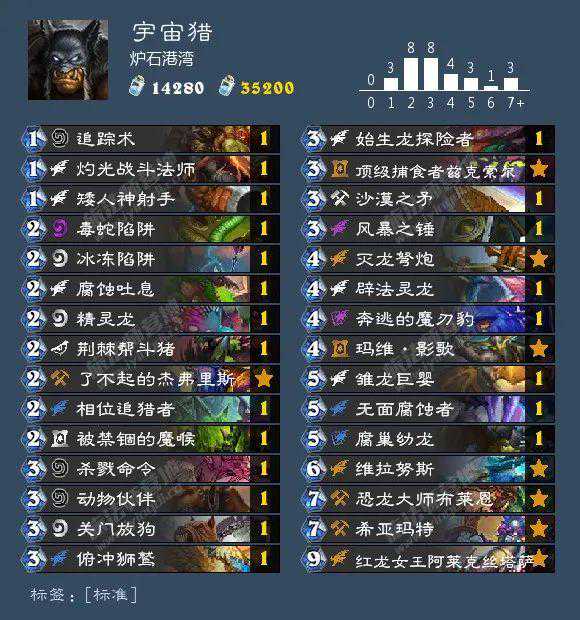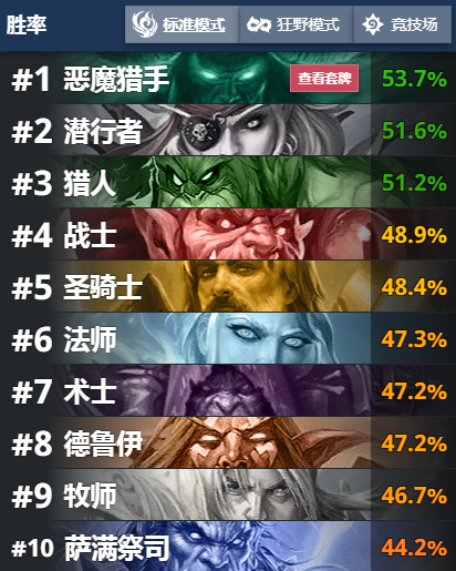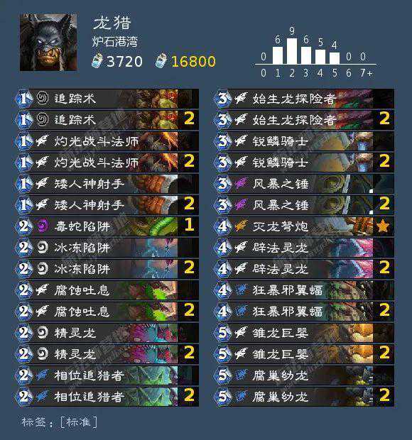 正好东少我今天也把最新的标准模式卡组汇总整理完毕,我一共整理了56套卡组。目前标准天梯三家争霸,其中节奏瞎、JK贼(奥秘或潜行)、龙猎或打脸猎目前属于T1卡组。另外激怒战在高分段的表现很不错。