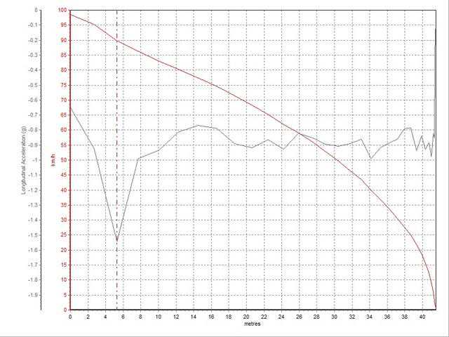 相对硬朗的悬挂支撑使得车辆在紧急制动状态下的姿态依旧保持的十分稳健。
