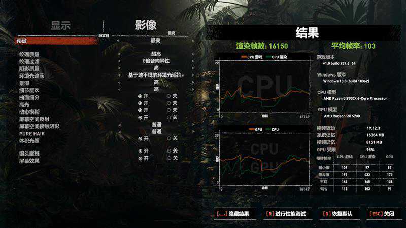 锐龙53500X的帧率是103FPS。《古墓丽影:暗影》同样也是Intel处理器的优势项目,不过需要搭配顶级显卡才能体现出来。使用RX5700这样的显卡时,锐龙53500X与i5-9600KF之间仅有2FPS的差距。