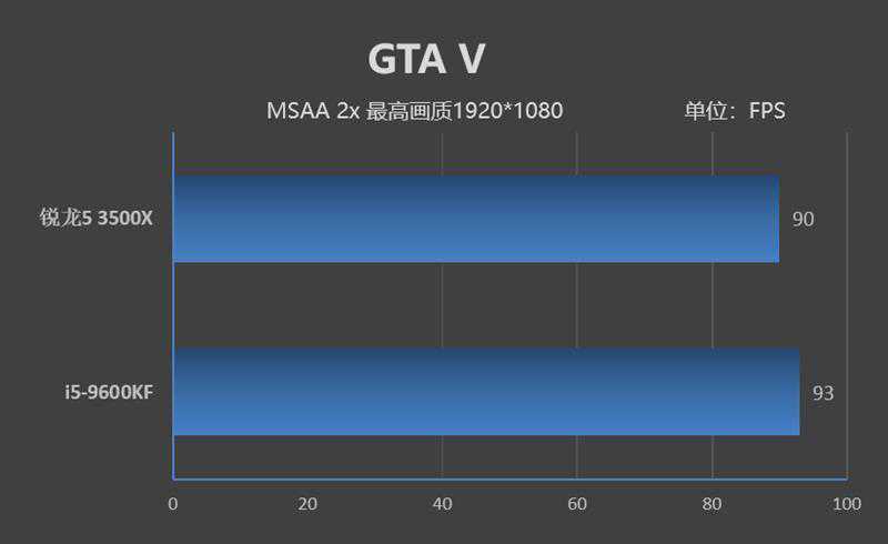 作为老牌的Intel优势项目,i5-9600KF在《GTAV》中的表现比锐龙53500X要强了3%的样子。