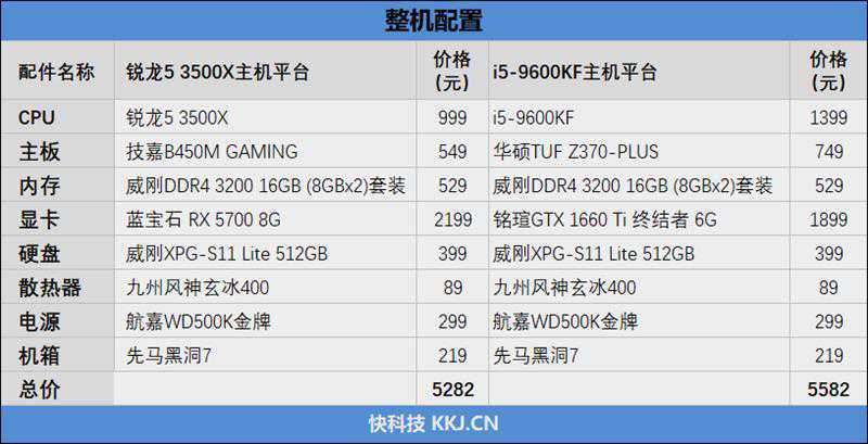 当然,并不一定要按照上面的配置,不过很明显的一点,由于板U在价格上的优势,即便是锐龙53500X平台配备了性能更强的显卡,整机价格还是要比9600KF便宜不少。