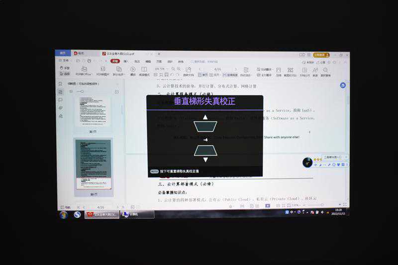 1.49-1.64投射比例,无论是投射幕布还是直接大白墙,对输出的画面完全没有影响,网课内的字体,图形,数字都是非常清晰,锐利。内置的10W音响,播放效果可以,无任何杂音,对网课内容能够清晰的播放,让我感觉到了一款专为投射设计的投影是非常纯粹的,传统、简单、全部技术堆到了投射上,作为网课投影表现的相当不错。