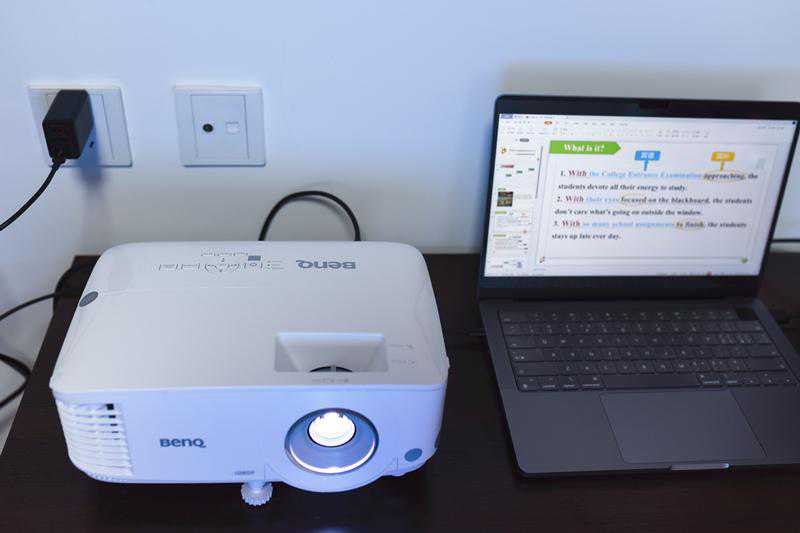 我使用的设备呢就是简单直接点,笔记本电脑+明基MH560投影仪的组合,使用HDMI线直连。全程使用明基MH560及机身音响,10w的输出功率音效还是不错的,孩子的视力,听力都不容忽视。