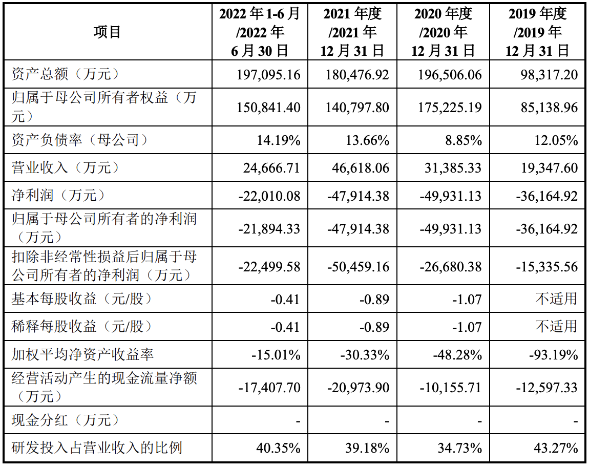 2019年、2020年、2021年和2022年上半年,太美科技的营收分别为1.93亿元、3.14亿元、4.66亿元和2.47亿元,净利润分别为-3.62亿元、-4.99亿元、-4.79亿元和-2.20亿元,扣非后净利润分别为-1.53亿元、2.67亿元、-5.05亿元和2.25亿元。