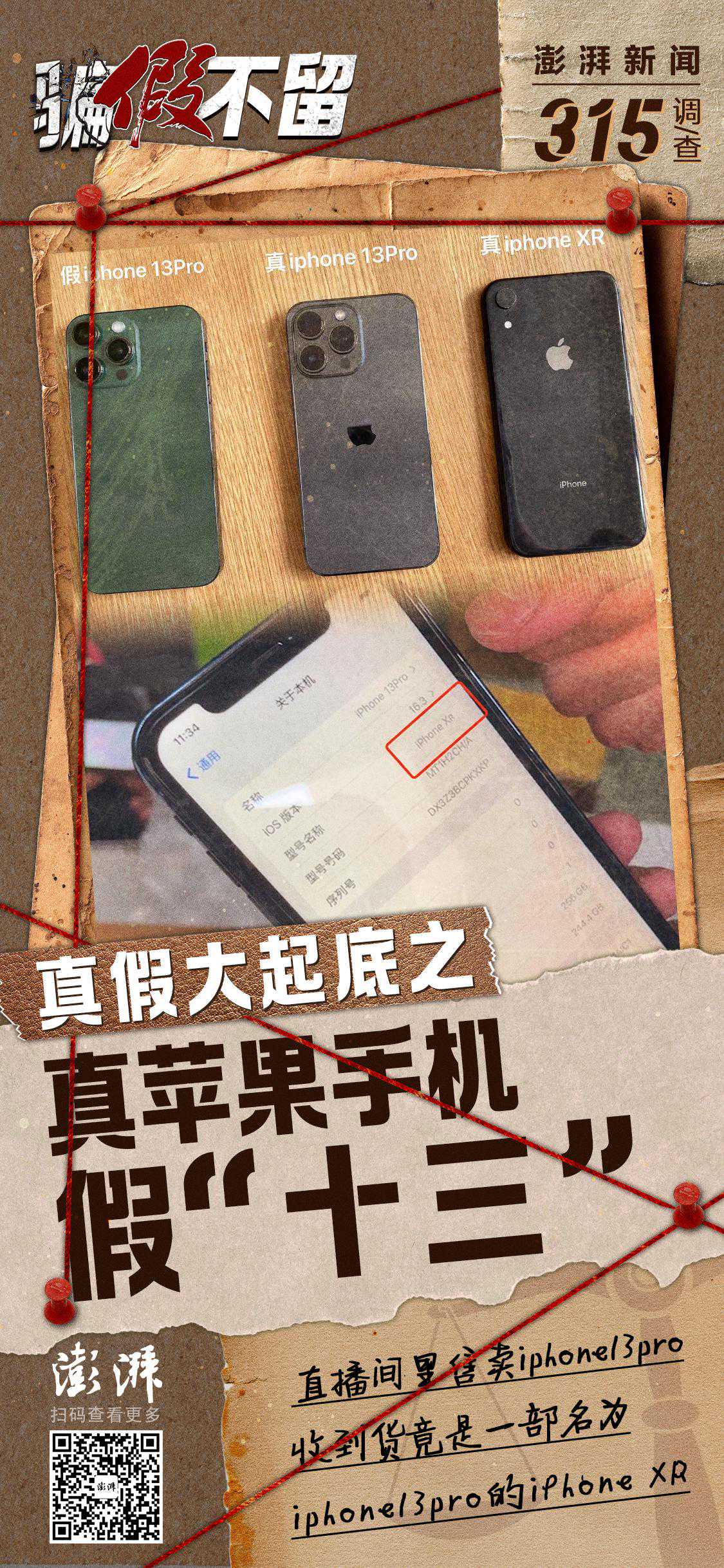 直播间低价销售iPhone13Pro手机,诱导消费者线下交易,收到手机后却发现这其实是一部名为“iPhone13Pro”的“iphoneXR”型号手机。澎湃新闻记者廖艳吴琪何沛芸实习生王心怡(03:20)