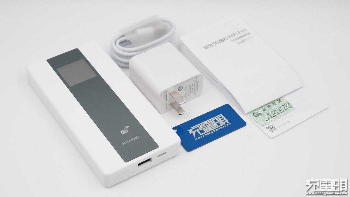 包装盒内除了华为5G随行WIFIPro外,还有40WSuperCharge充电器、数据线和使用说明书。