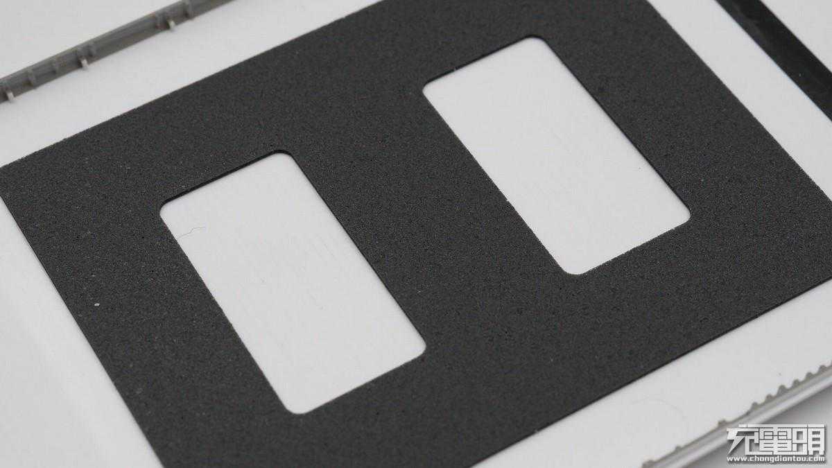 将另一面的外壳也拆下,黑色塑料板中心设计有凹槽用来放置电芯。