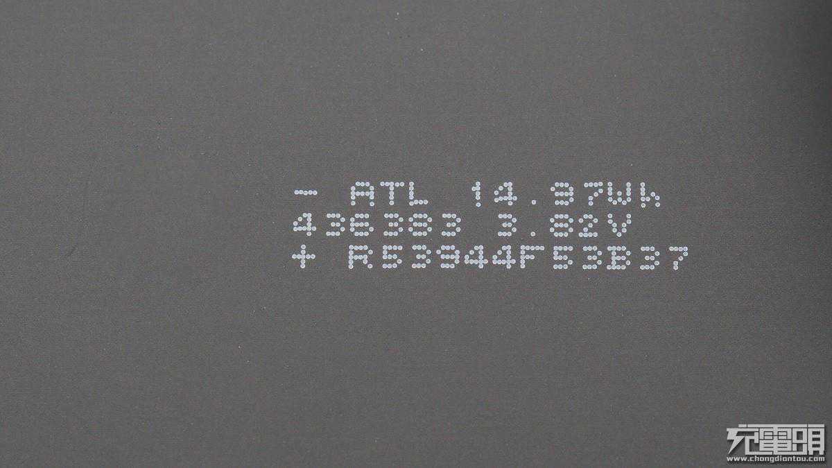电芯另一面特写,ATL电池,电池厚4.3mm,宽63mm,长83mm,均压3.82V。