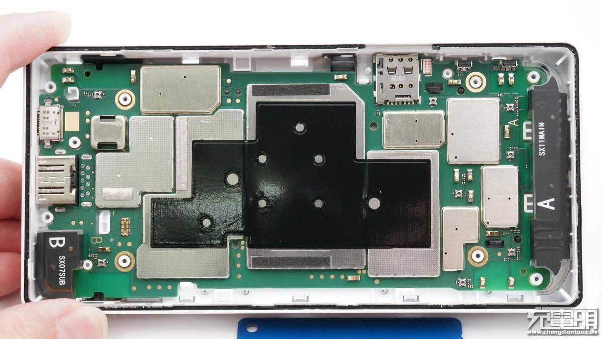 拆掉PCB板上的金属屏蔽罩,部分芯片上贴有导热垫帮助导热。