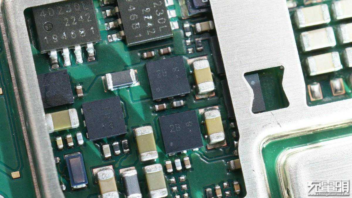 切开边缘的屏蔽罩,内部是无线充电主控和充电功率管。