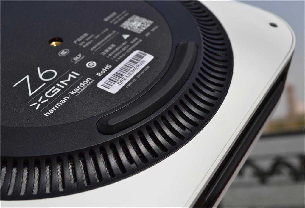 极米Z6四周布满了一圈圆形的栅栏,用于辅助投影的物理散热,加上前文提到的音箱区域的散热,从而提升了投影的散热面积,提高投影的工作效率,延长使用寿命。