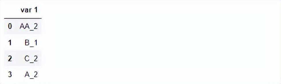 importpandasaspddf=({"var1":["AA_2","B_1","C_2","A_2"]})df运行结果如下:
