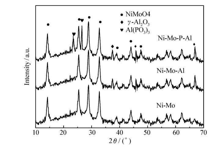 采用D8-ADVANCE型X射线衍射仪(德国BRUKER公司)进行XRD测试,对催化剂的物相结构进行表征和分析。测试条件如下:CuKα辐射源(0.154nm),管电压为40kV,管电流为40mA,扫描速率为4(°)/min。采用JW-BK200C物理吸附仪(北京精微高博科学技术有限公司)进行N2等温吸脱附实验,测定催化剂的比表面积采用AutoChemⅡ2920型化学吸附仪(美国Micromeritics公司)进行H2程序升温还原(H2-TPR)实验,测定催化剂的氧化还原性能。