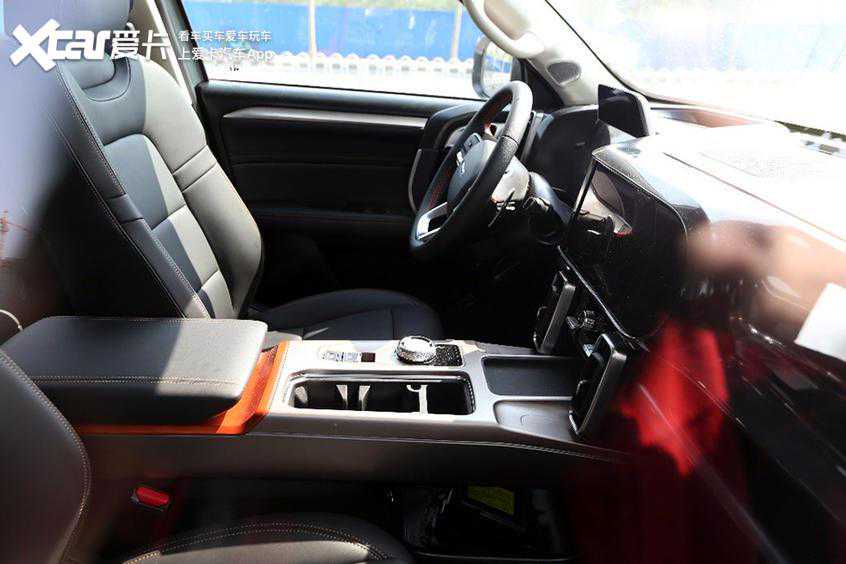 侧面来看,该车采用了平直的线条,而黑橙的撞色设计搭配两段式腰线带来非常强烈的时尚气息和层次感。此外,该车配备了大尺寸的双五辐战斧式轮圈,外凸的“U”型黑色轮眉与前保险杠及侧裙连为一体,兼顾力量感的同时也提升了该车的整体性。金属色的原车踏板进一步凸显了整车的力量感,更预示了这款车拥有不俗的通过性能。