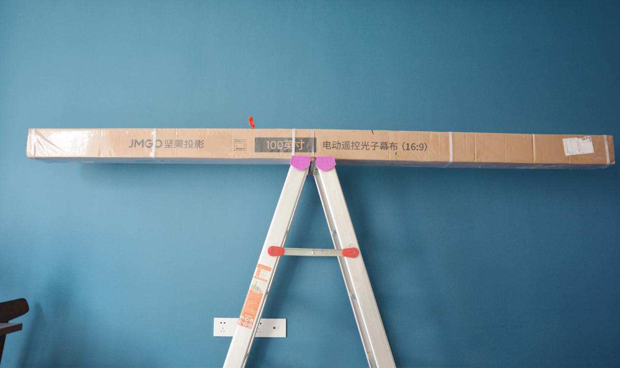 初次收到产品时,坚果电动遥控光子幕布给我的第一感觉是“大气”,单就这大尺寸的包装盒长度往背景墙上一对比,更加让人期待其体验。