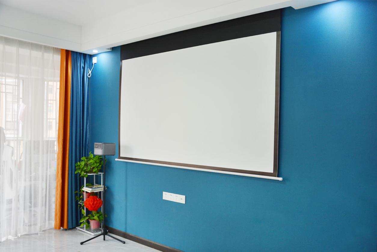 作为新一代的年轻人,我相信大家都比较喜欢简约却又不失大气的家装方案,毕竟随着时间的推移,简约风格的装修反而有一种历久弥新的感觉。像笔者去年刚装修完的新房,我就去掉了传统大众化的茶几和电视背景墙。刚开始,本是想直接用一台投影仪投屏到墙壁上作为客厅的观影设备,但由于背景墙贴有深蓝色的墙布,投屏出来画面偏色严重,这让我瞬间萌生了安装一款幕布的想法。