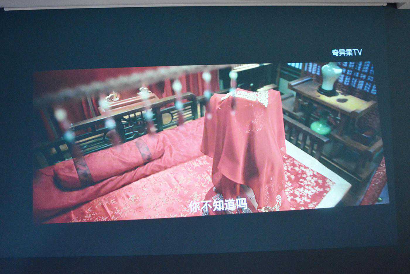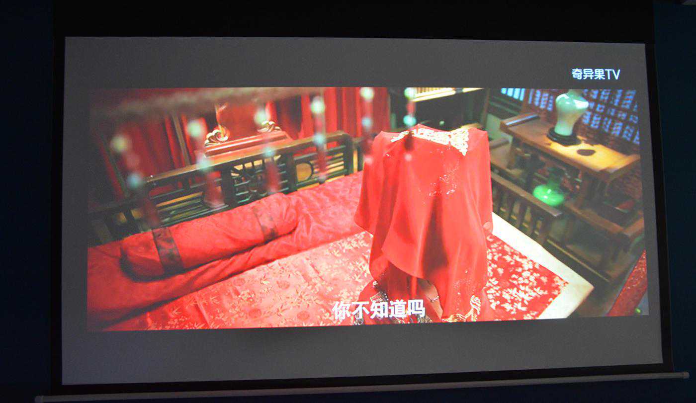 这是我们随便挑选一个播放画面,可以看到,用这款幕布投影,画面中的人物主体以及文字等内容都被显示得很清晰。特别是整体画面中的明暗对比,坚果电动遥控光子幕布过渡均匀,柔和,最终让坚果J10S投影仪本身所具有的高品质画质得到了完全的呈现。
