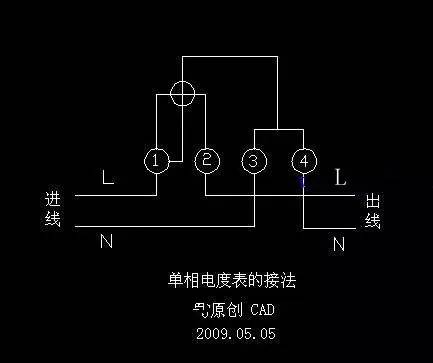直接接入法:单相电度表共有四个接线端子,从左至右按1、2、3、4编号,如下图