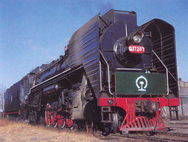 前进型蒸汽机车,中国第一种自主设计的干线货运机车。1956年9月由大连工厂试制成功,各项技术指标均达到蒸汽机车的先进水平。机车全长26063毫米,构造速度每小时80公里,模数牵引力324千牛,轴式1-5-1。原称和平型(代号HP),该型机车在文革期间一度改称为“反帝型”,自1971年定名为“前进型”(取自“革命是人类历史前进的火车头”这句当时的名言)一直沿用下来,车型代号“QJ”。。前进型机车先后由大连、长春、牡丹江、沈阳、唐山、大同等工厂小批量生产。1964年,大同工厂对其又进行了一系列改造,使机车的最大轮周功率达到2190千瓦,机车全长也增加到29180毫米。1988年停止生产,共制造4708台。