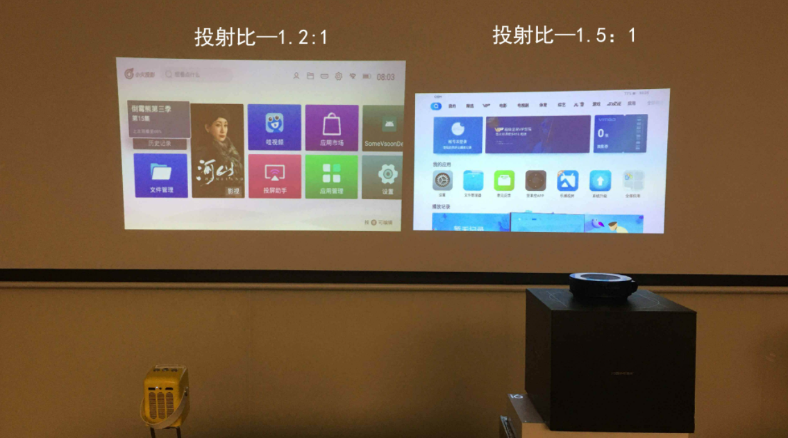 最好的观影效果必然是小距离,大尺寸,所以要想达到这样的效果我们看的是投射比,也就是画面投射出来的效果。建议往小的值选,越小的投射比就意味着投影机能够在更短的距离内投射出大画面。目前市面上的投影仪普遍采用1.2:1的投射比,在2.65米左右投影尺寸在100英寸左右。因而。这一点就不详细展开来说了。