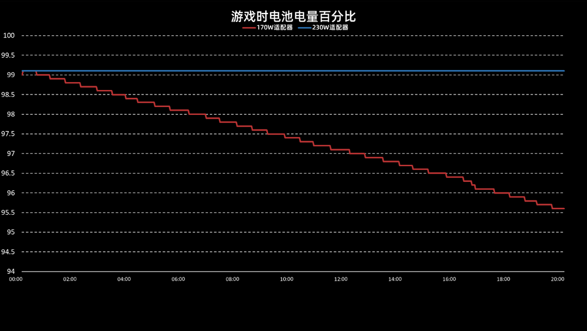 然后此时市电输入功率约170W,实际上就比掉电时高了5W。希望联想能解决一下这个问题。我看联想原装的230W适配器淘宝大概150左右,天猫则要快400元,这也可以说是额外的开销了。
